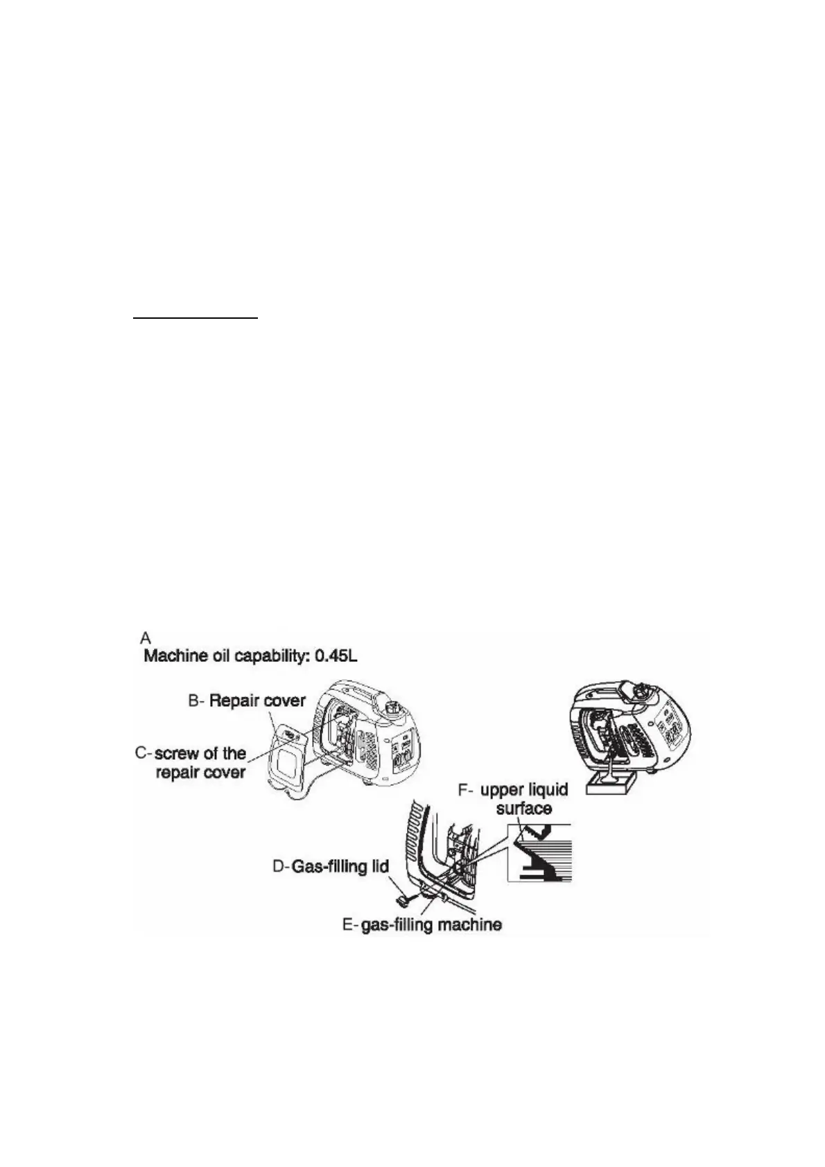 4. Fill the recommended machine oil, and check the machine oil level.