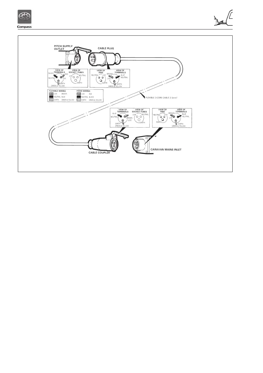 WIRING OF CONNECTING CABLE AND CARAVAN MAINS INLET