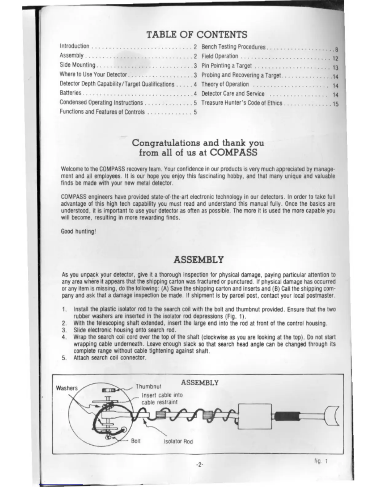Compass XP-350 - Table of Contents; Assembly