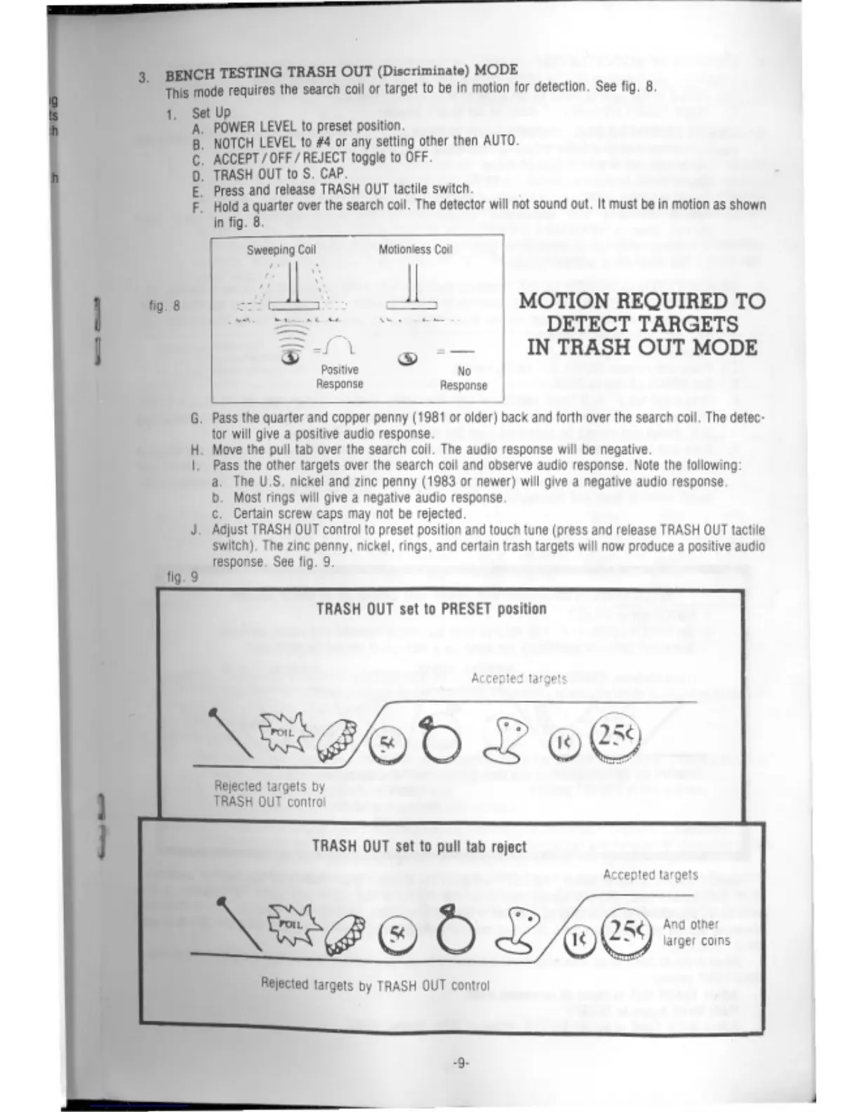 Compass XP-350 - Bench Testing Trash out; Trash out Set to Preset Position; Trash out Set to Pull Tab Reject