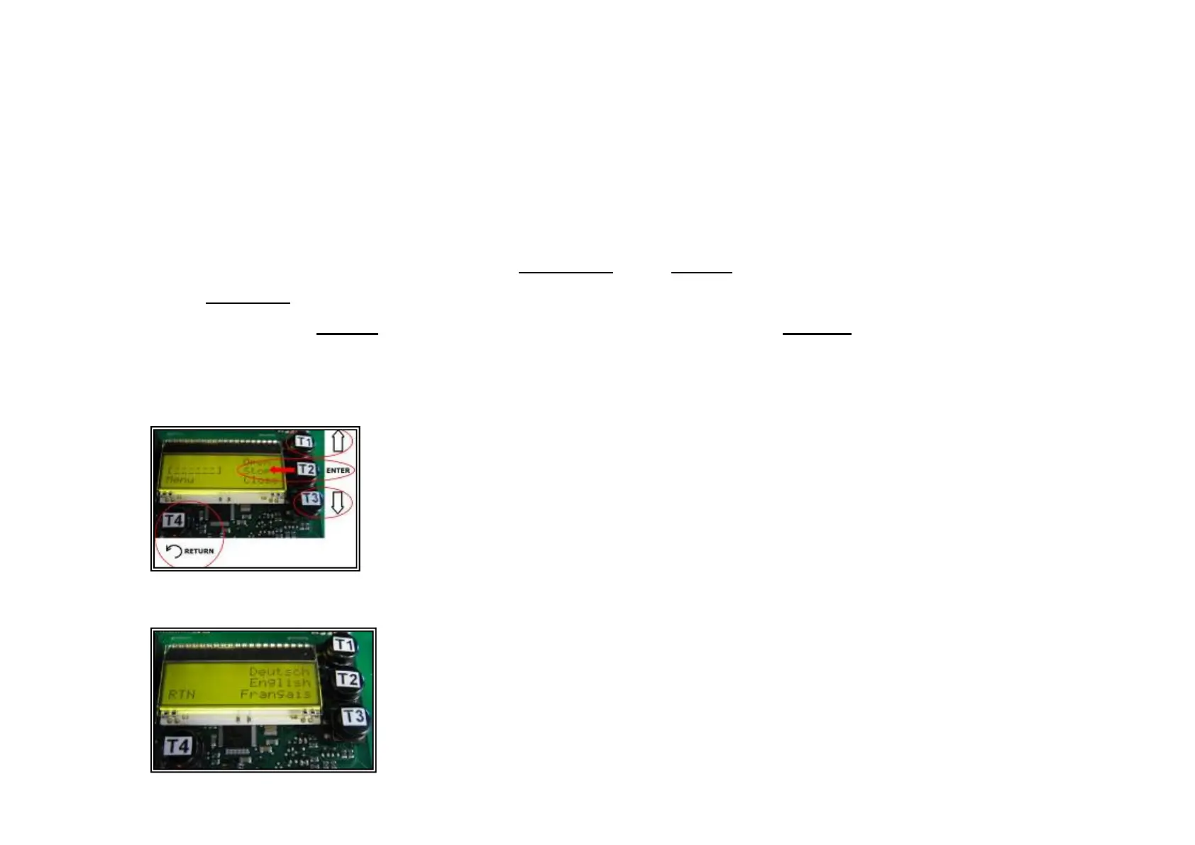 To enter the Menu use pushbutton T4. Use T4 also to return to the