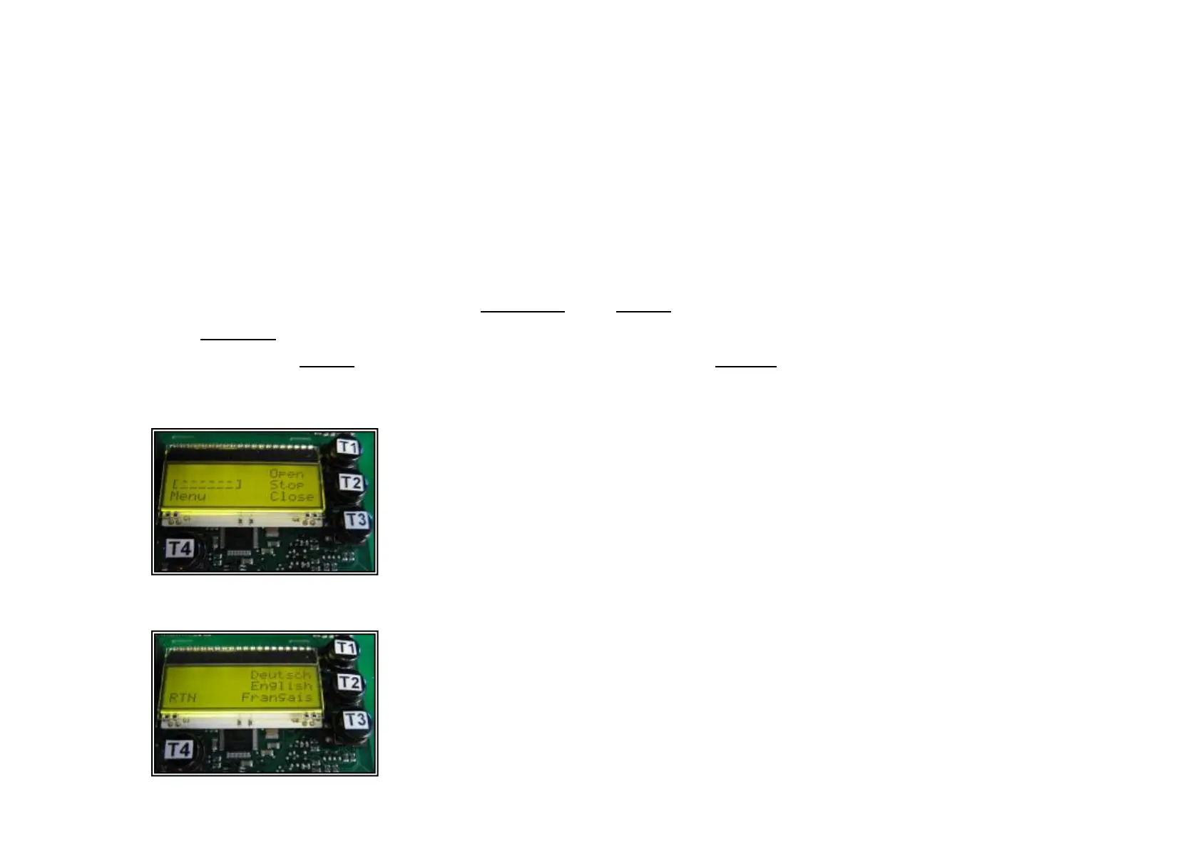 To enter the Menu use pushbutton T4. Use T4 also to return to the previous step.