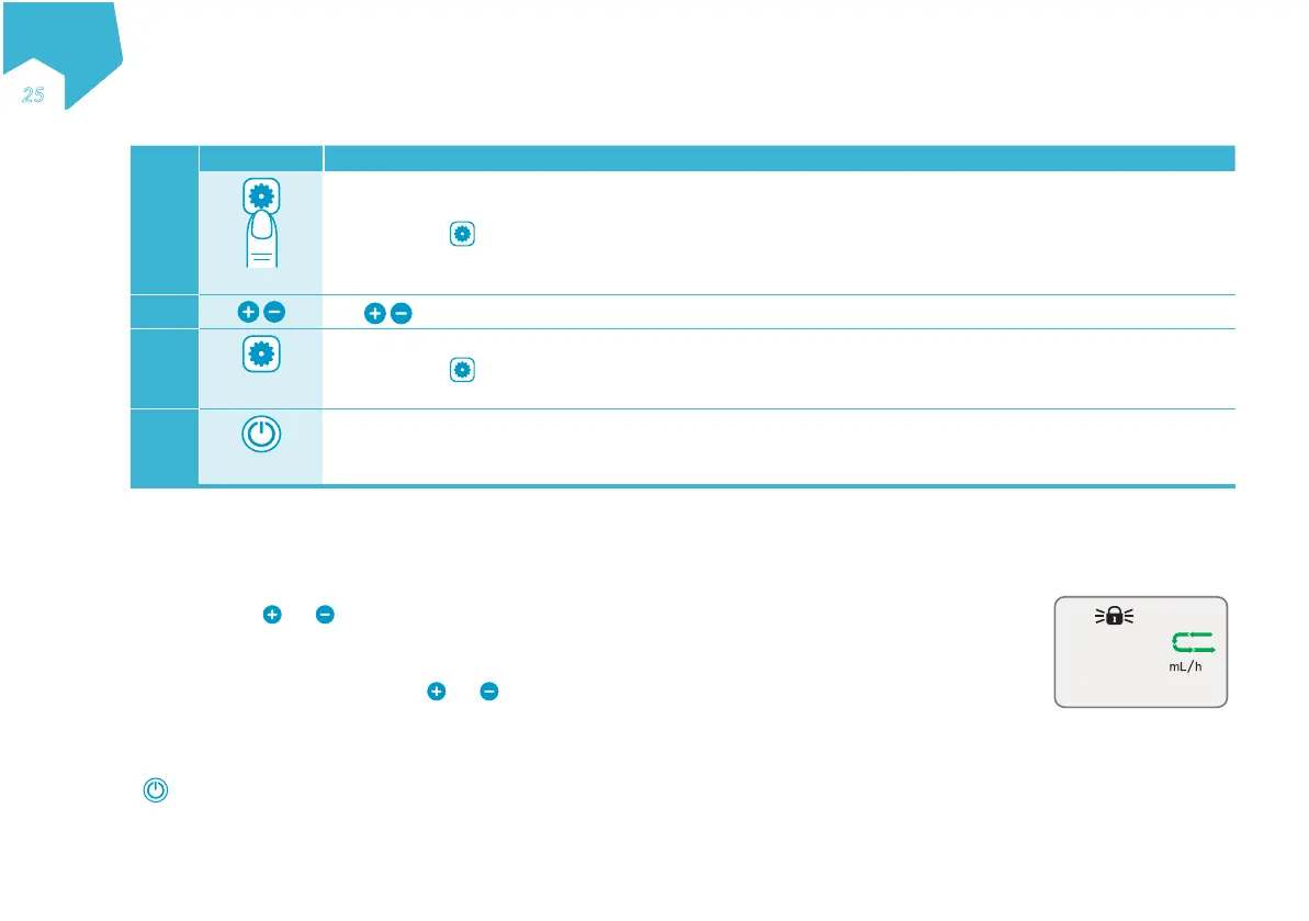 At any time, press and simultaneously to lock the keypad. The pump displays a KEYS LOCKED