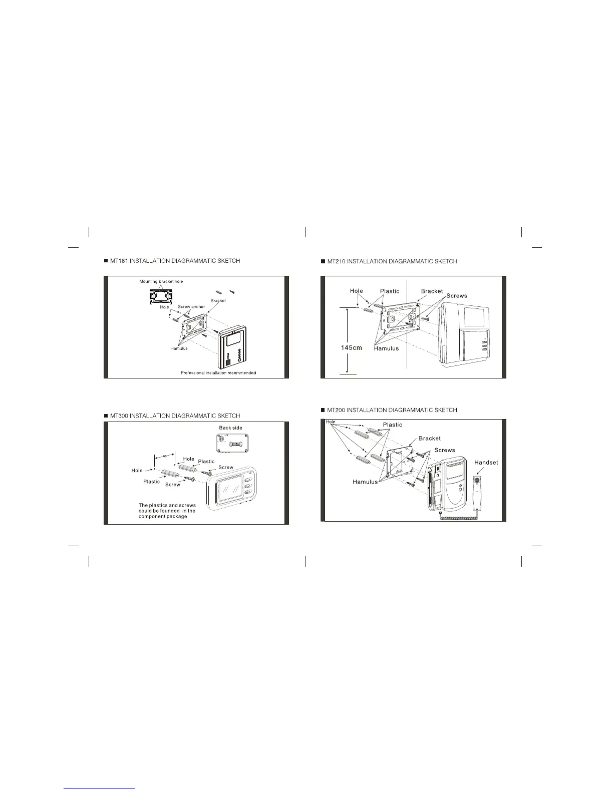 Competition MT320C-CK2 - MT181 Installation Diagram; MT210 Installation Diagram; MT300 Installation Diagram; MT200 Installation Diagram