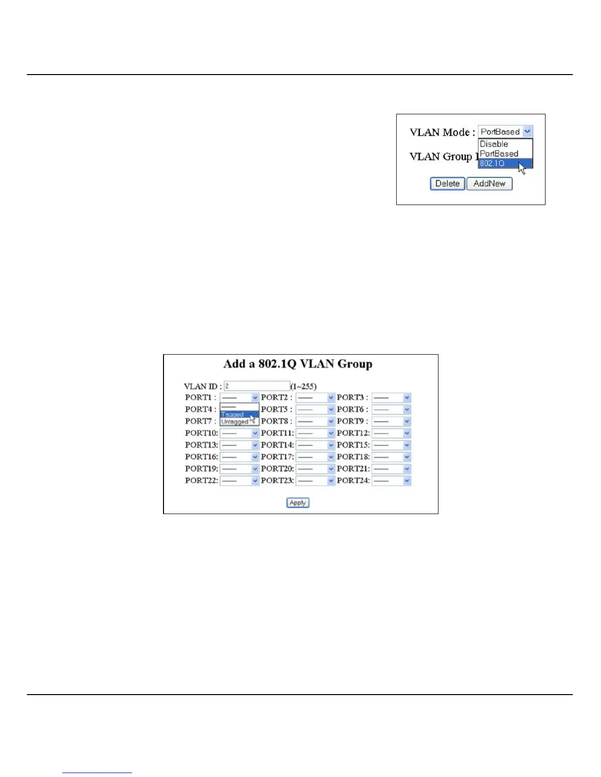 2. Enter the VLAN ID from 0 to 255 and select the port that you wish to