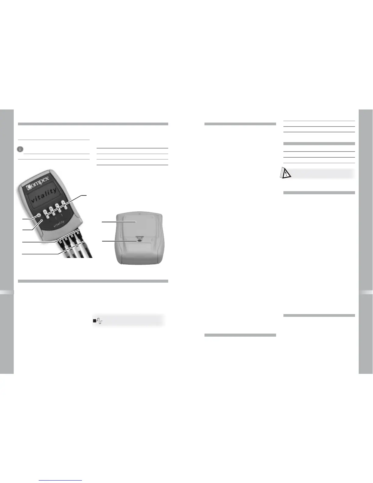 E – “+”/“–” knoppen van de 4 stimulatiekanalen