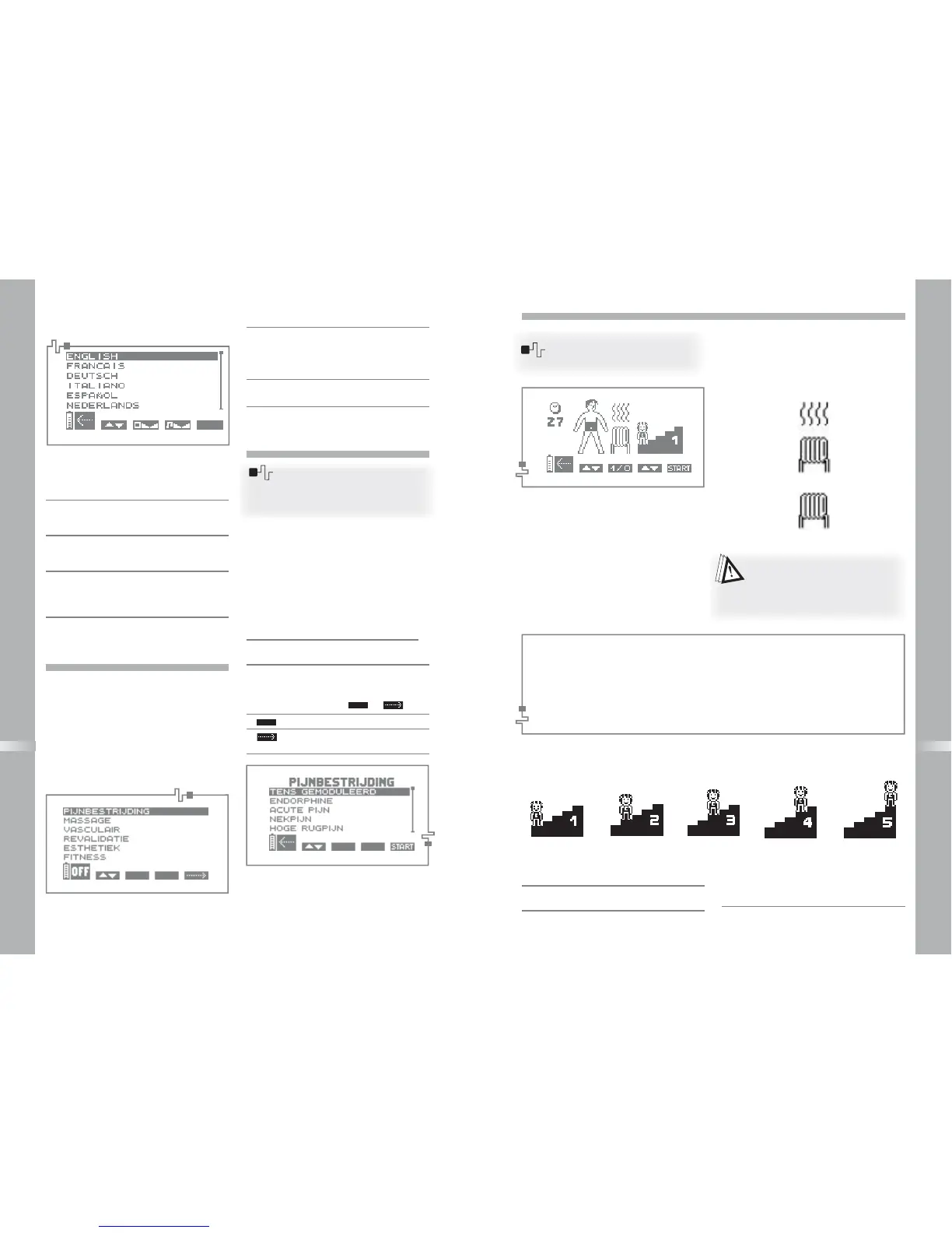 5c Bepaalde programma's vragen u, het trainingsniveau in te stellen. Hiervoor drukt u op de toets