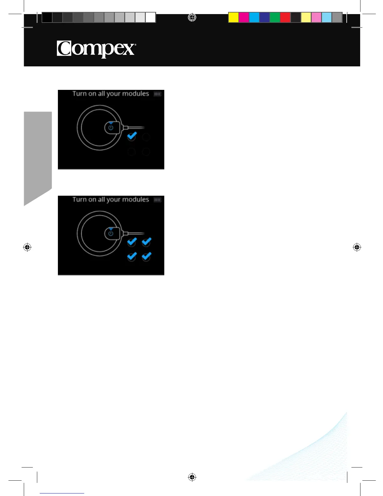 Once a module is turned on and recognized by the remote control, a check appears on the module�