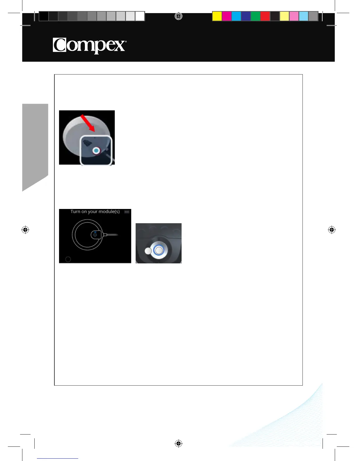 Stick the electrodes to your skin� The module is attached to the electrode from the side� Slide the module