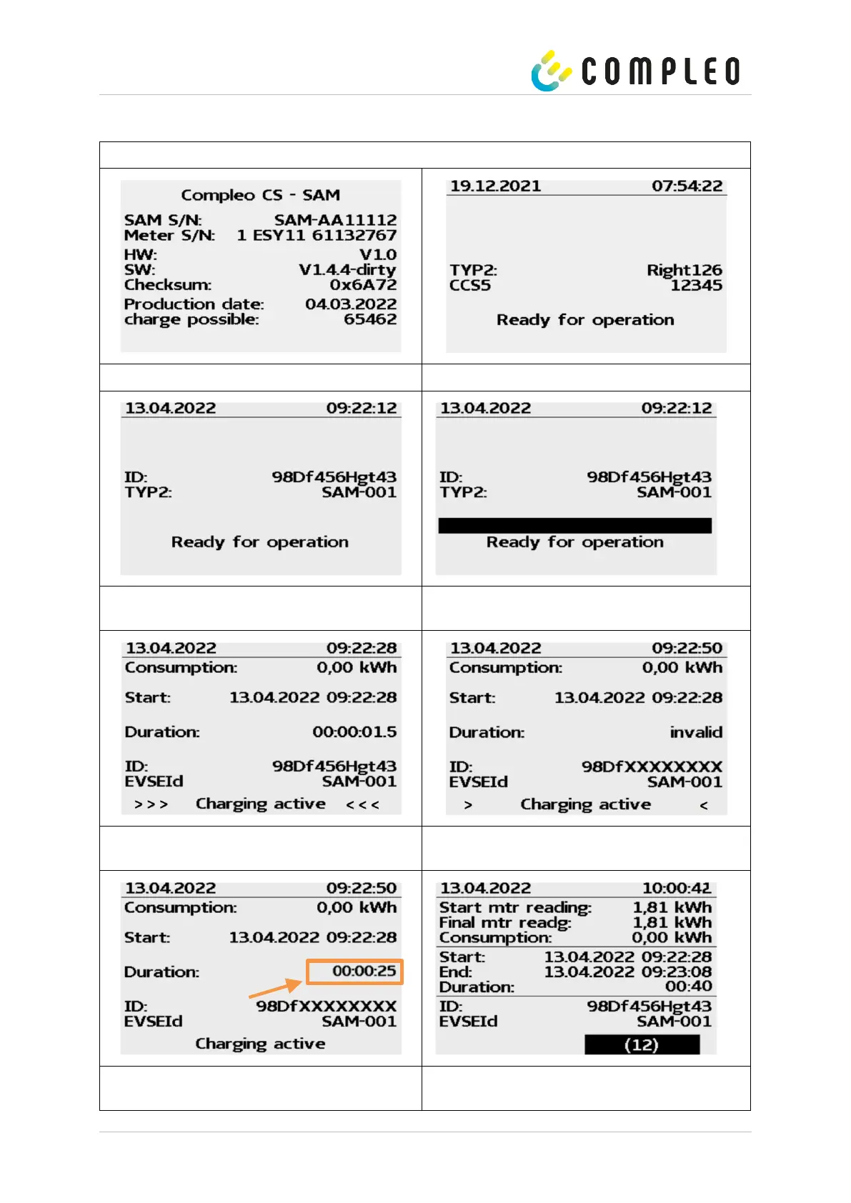 Summary at the end of the charging process.