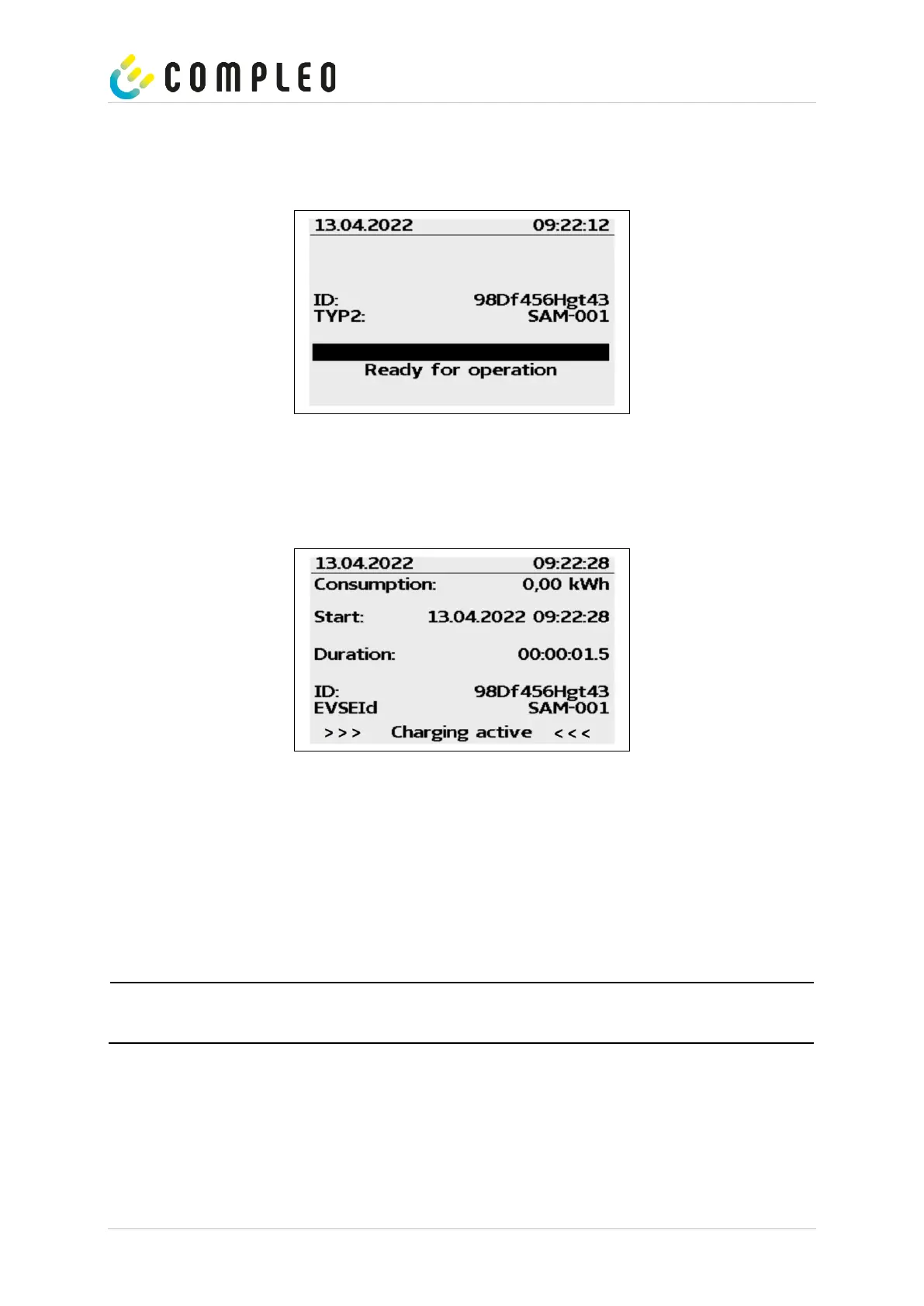 A few seconds after the start of the charging process, the personal ID is substituted by crosses except for a