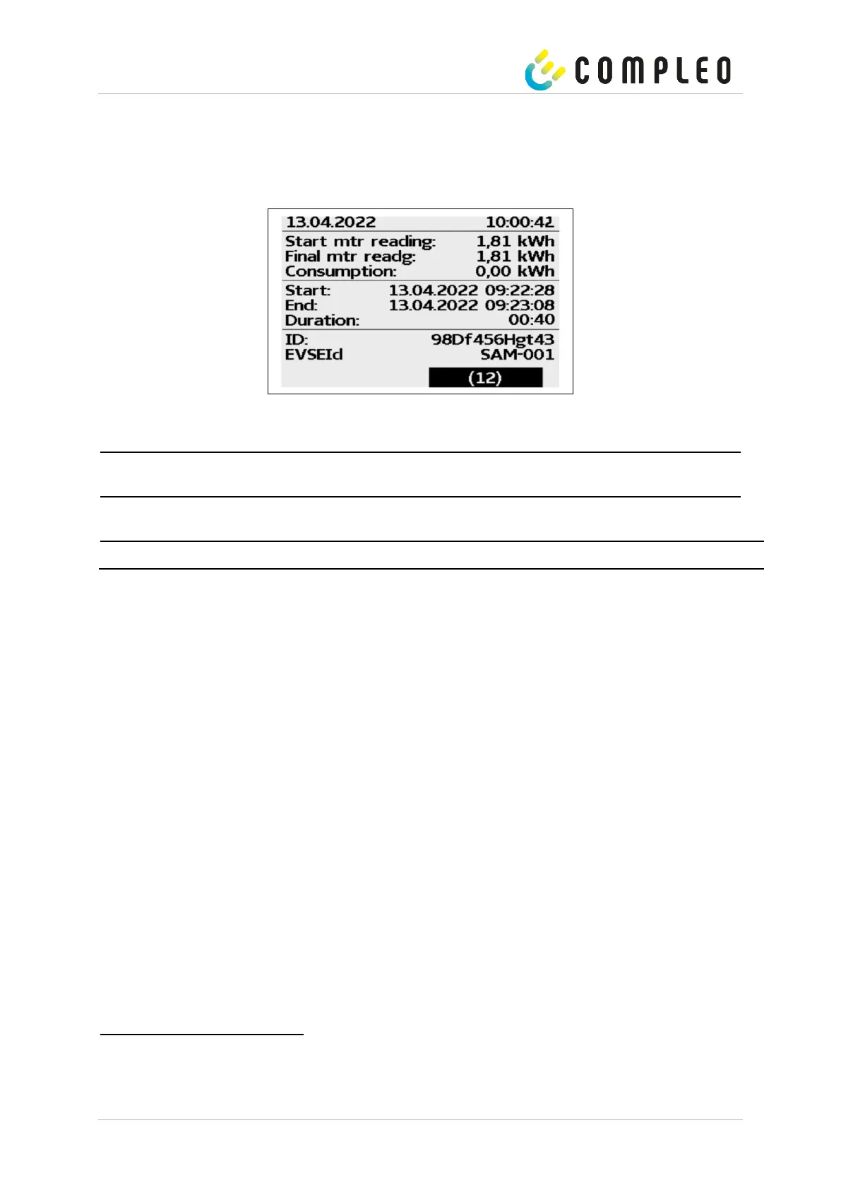 for the customer that the he should take a photo of the summary for this purpose (after the charging process!).
