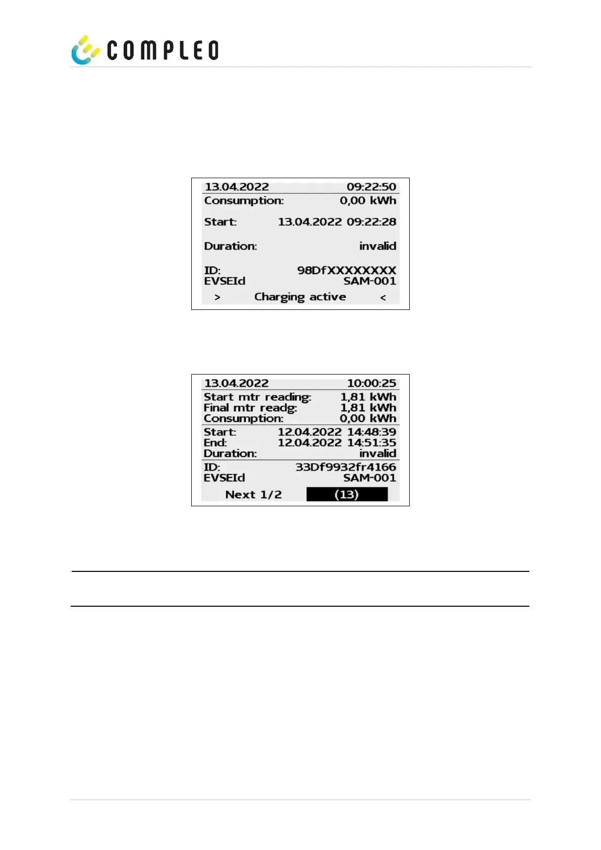 Likewise, in the summary (at the end of the charging process), the word "Invalid" is shown in the display under
