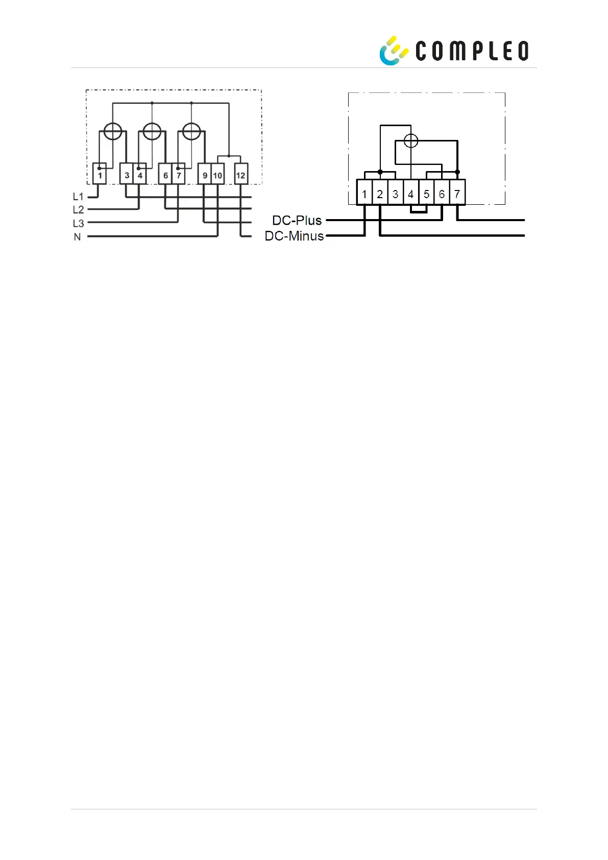 Figure27: Connection diagrams for meter; left AC, right DC