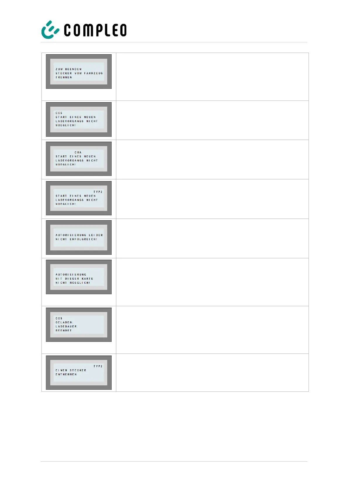• The charging process can be stopped at the corresponding