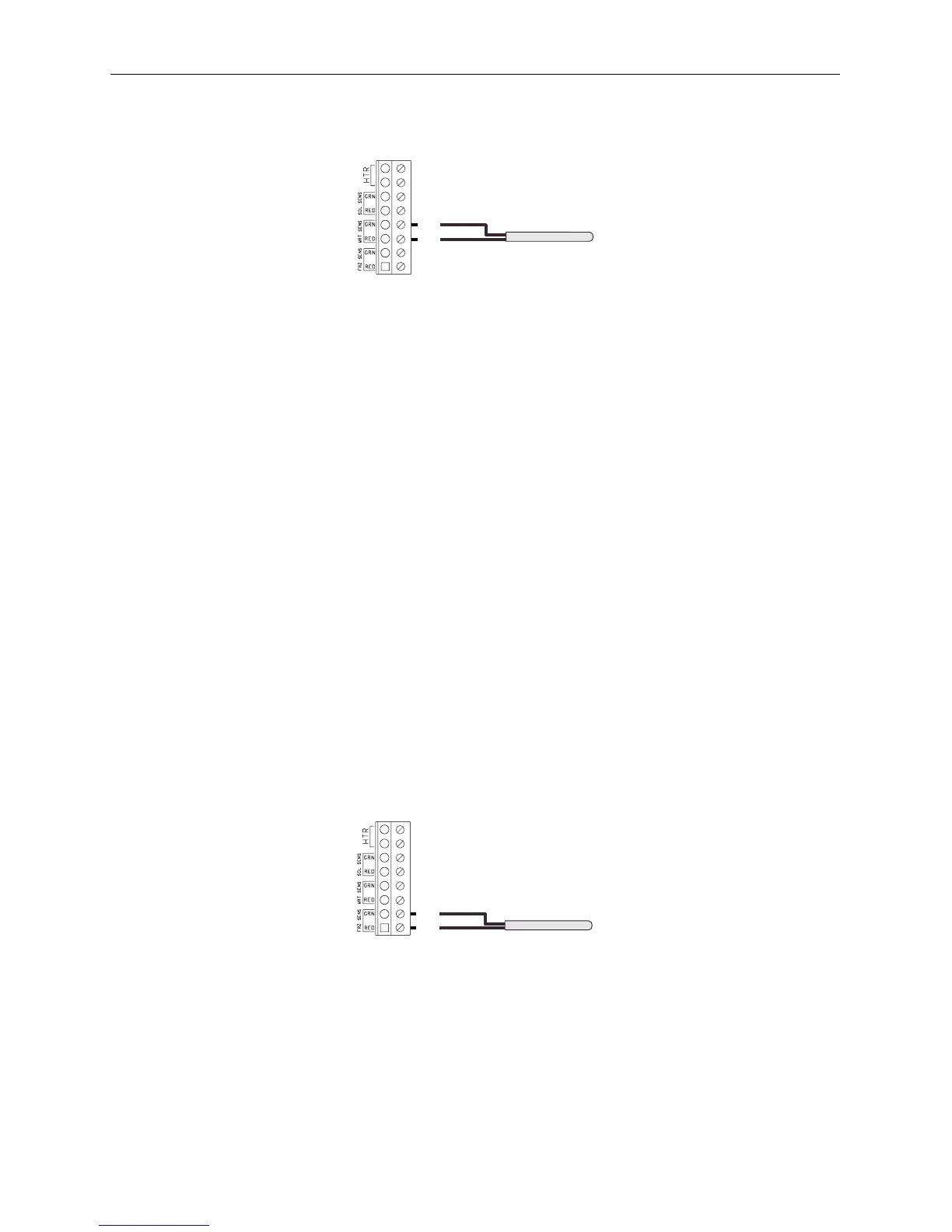 6. At the Power Center circuit board, connect sensor wires to WAT SENS screw terminals.