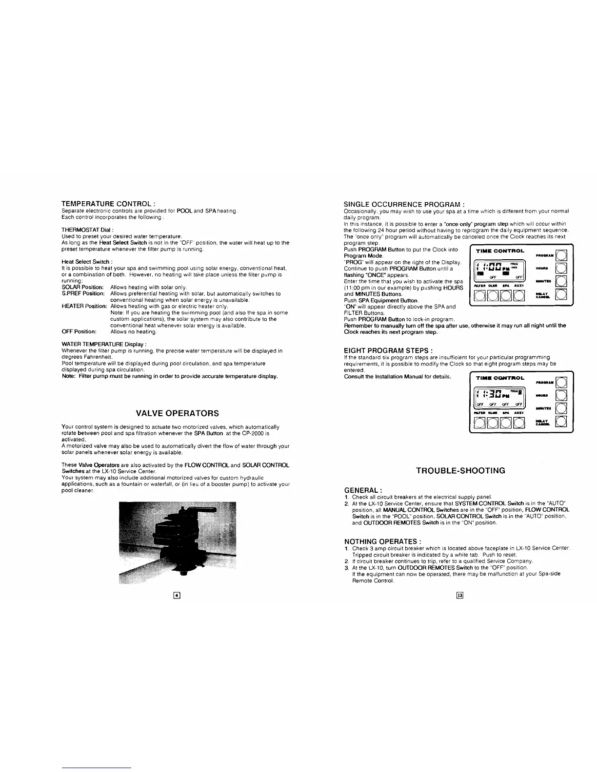 These Valve Operators are also activated by the FLOW CONTROL and SOLAR CONTROL