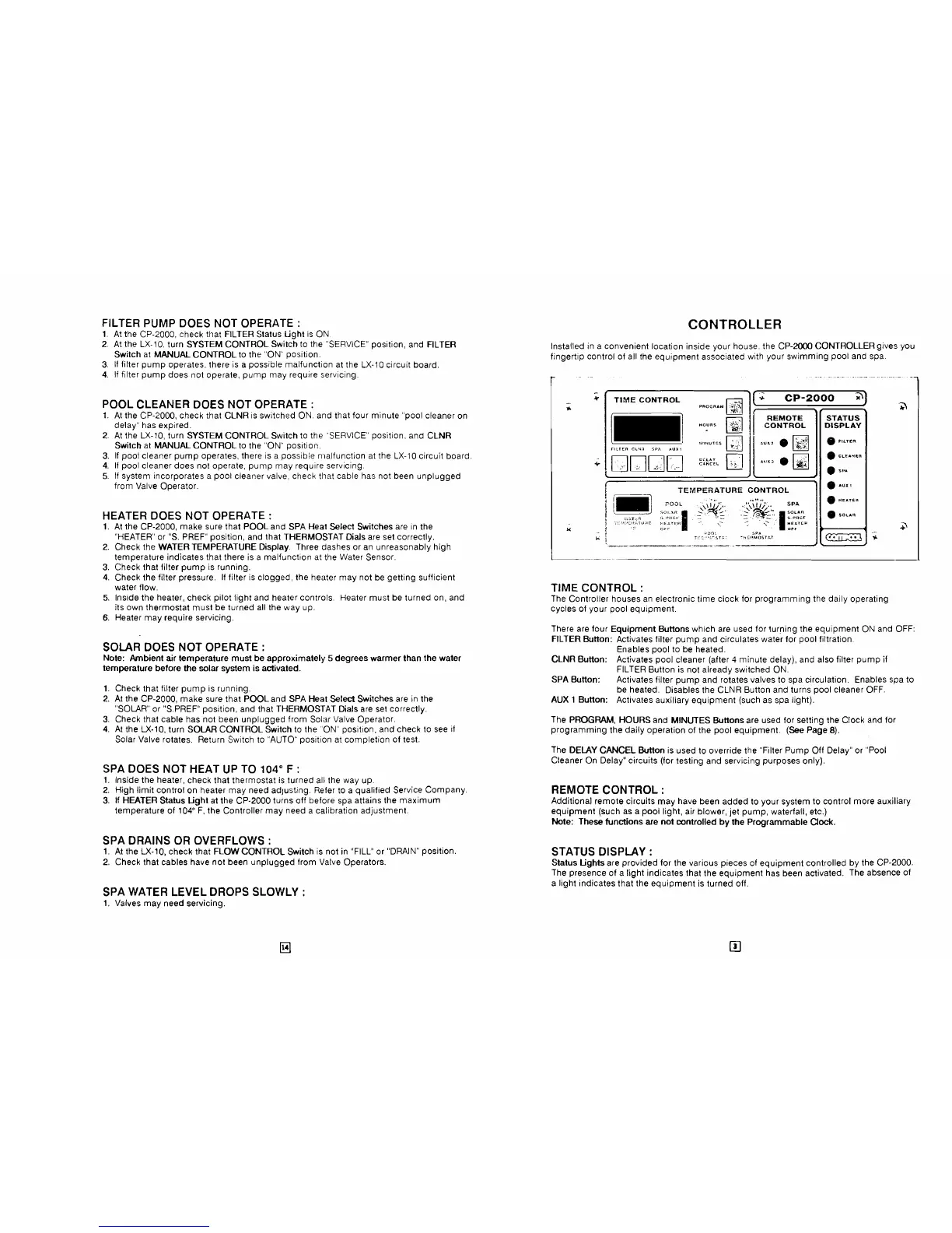 If pool cleaner pump operates, there is a possible nlalfunction at the LX-10 circuit board