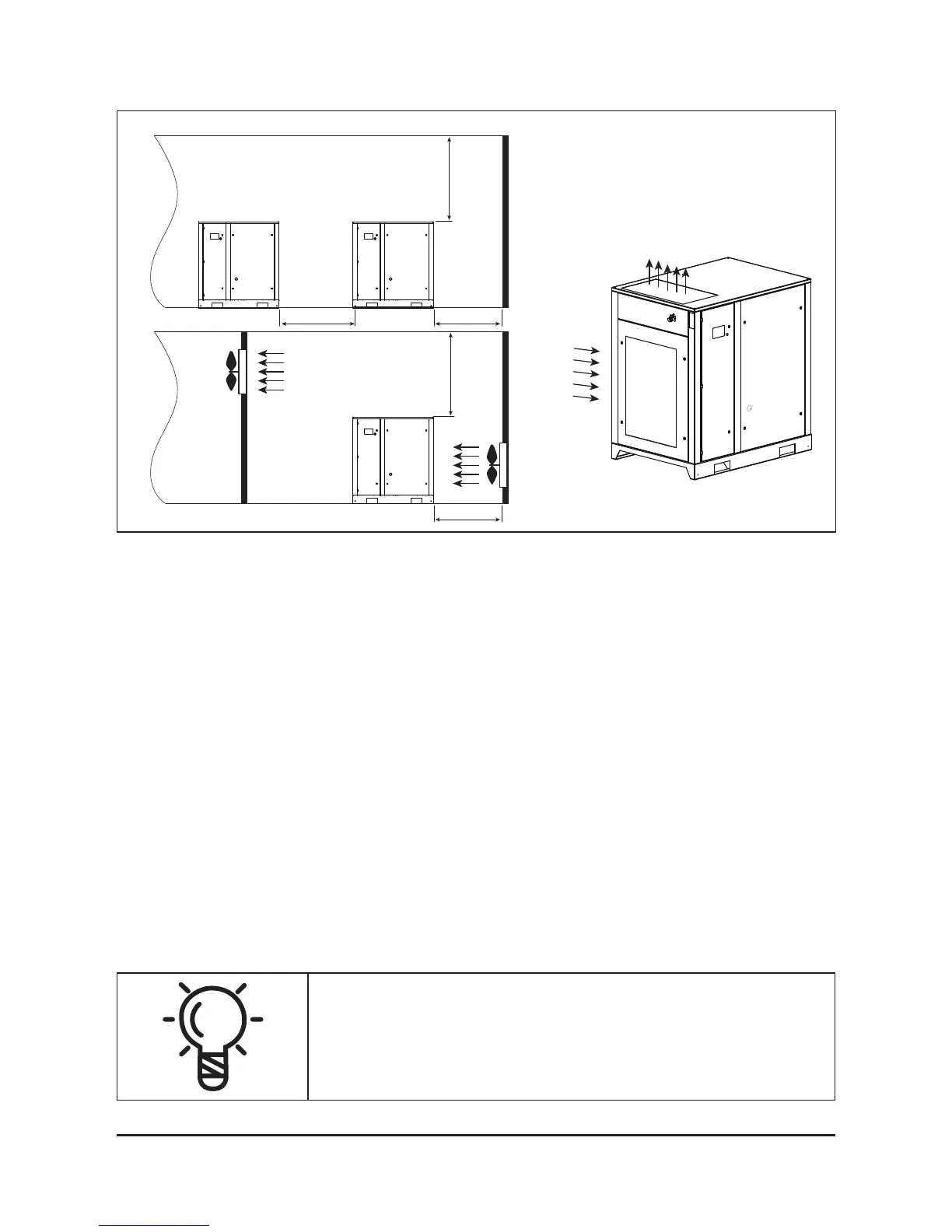Wenn mehrere Kompressoren montiert werden, halten Sie einen Minimumabstand von 1,5