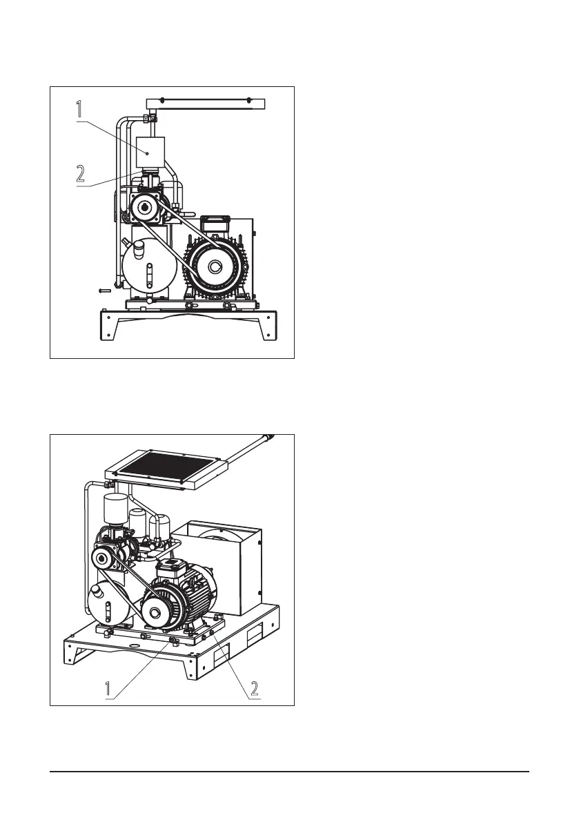 Loosen the 2 bolts of the motor (2) and the