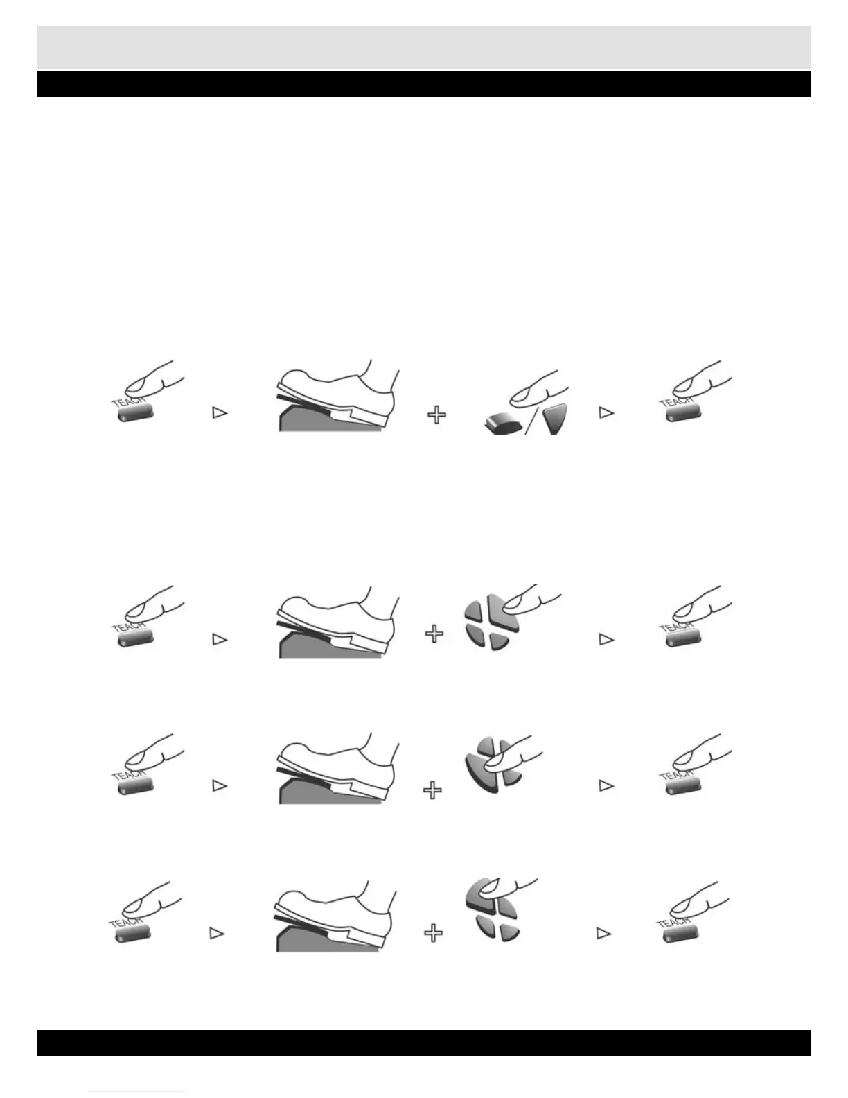 Press „Teach” button, Hold a pedal Press „Up” button Press „Teach” button to