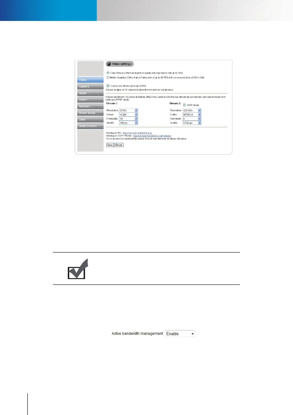 watch the live video on your mobile phone or PDA, please check the [Enable 2nd stream (include 3GPP)] box