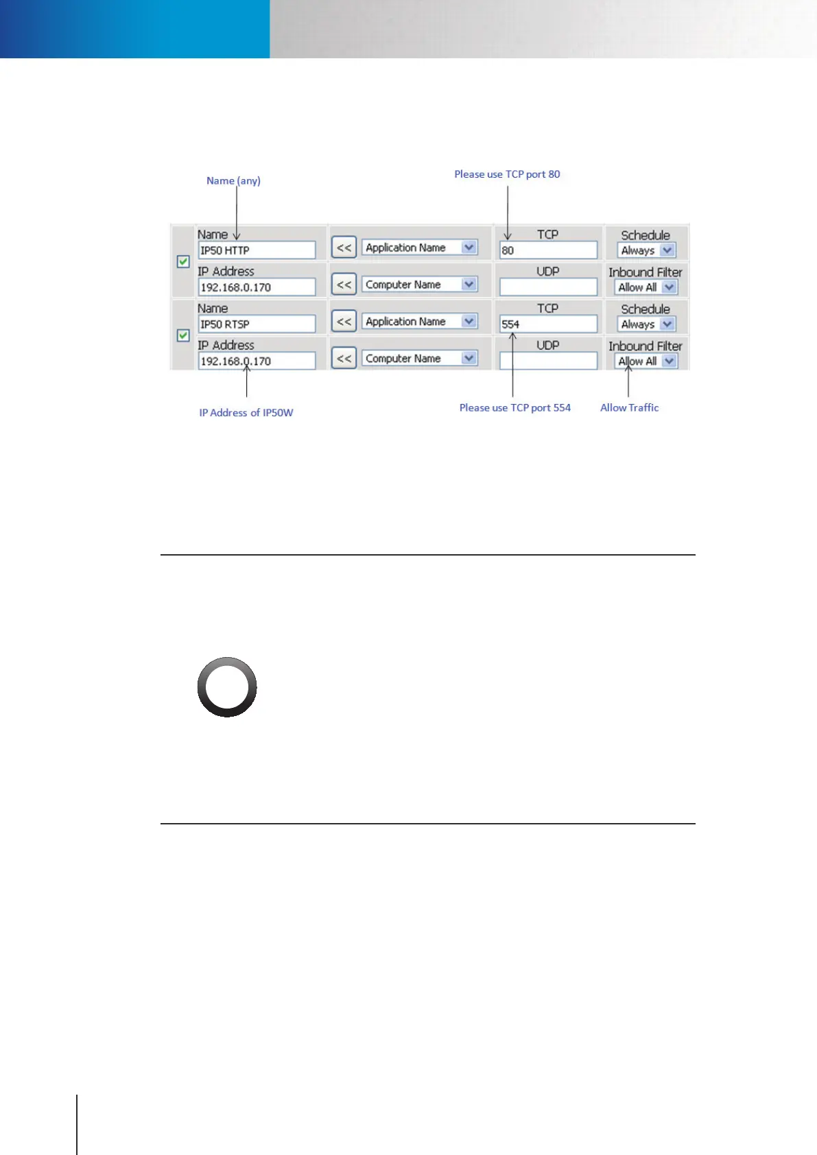 by the IP camera. For instance, if the IP camera uses RTSP port 554