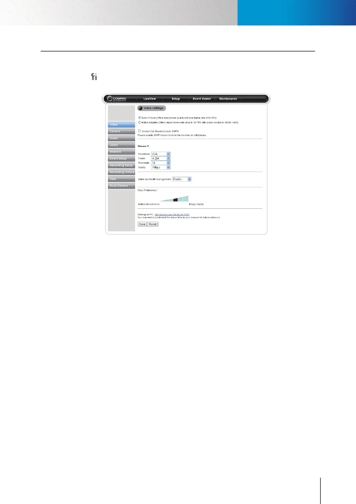 you to go to the Event Viewer and Maintenance of the camera. The main setup menu on the left contains