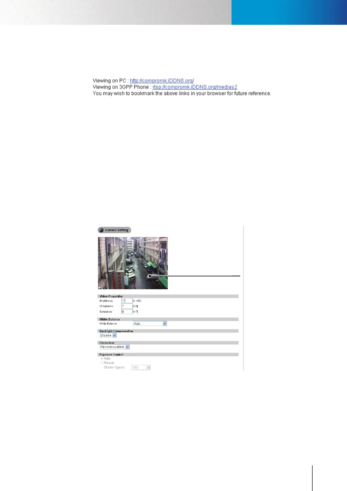 Here you can adjust the Brightness, Sharpness and Saturation on your IP camera.
