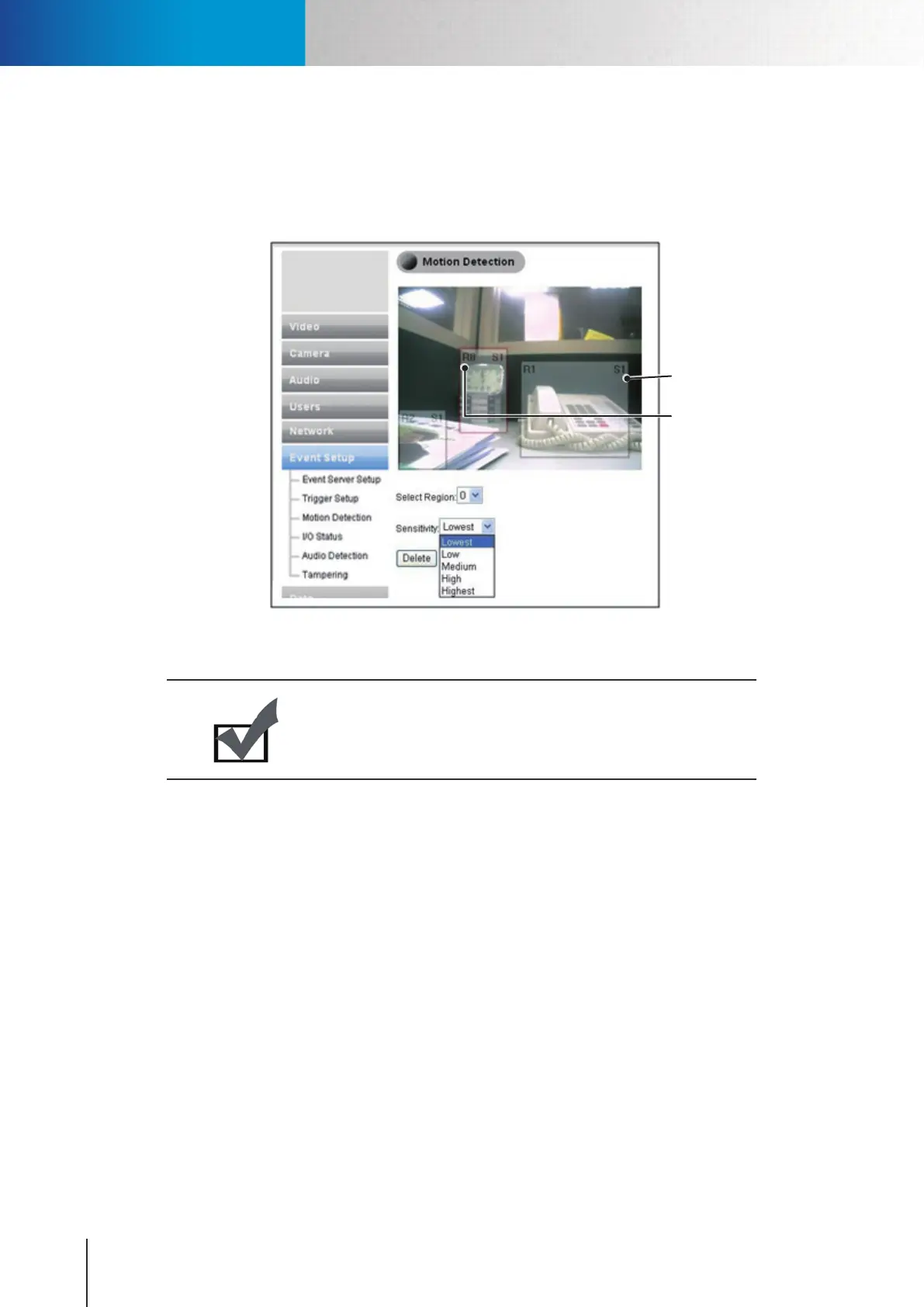 Motion detection feature provides a selection of 3 regions for motion detection. You can directly click and