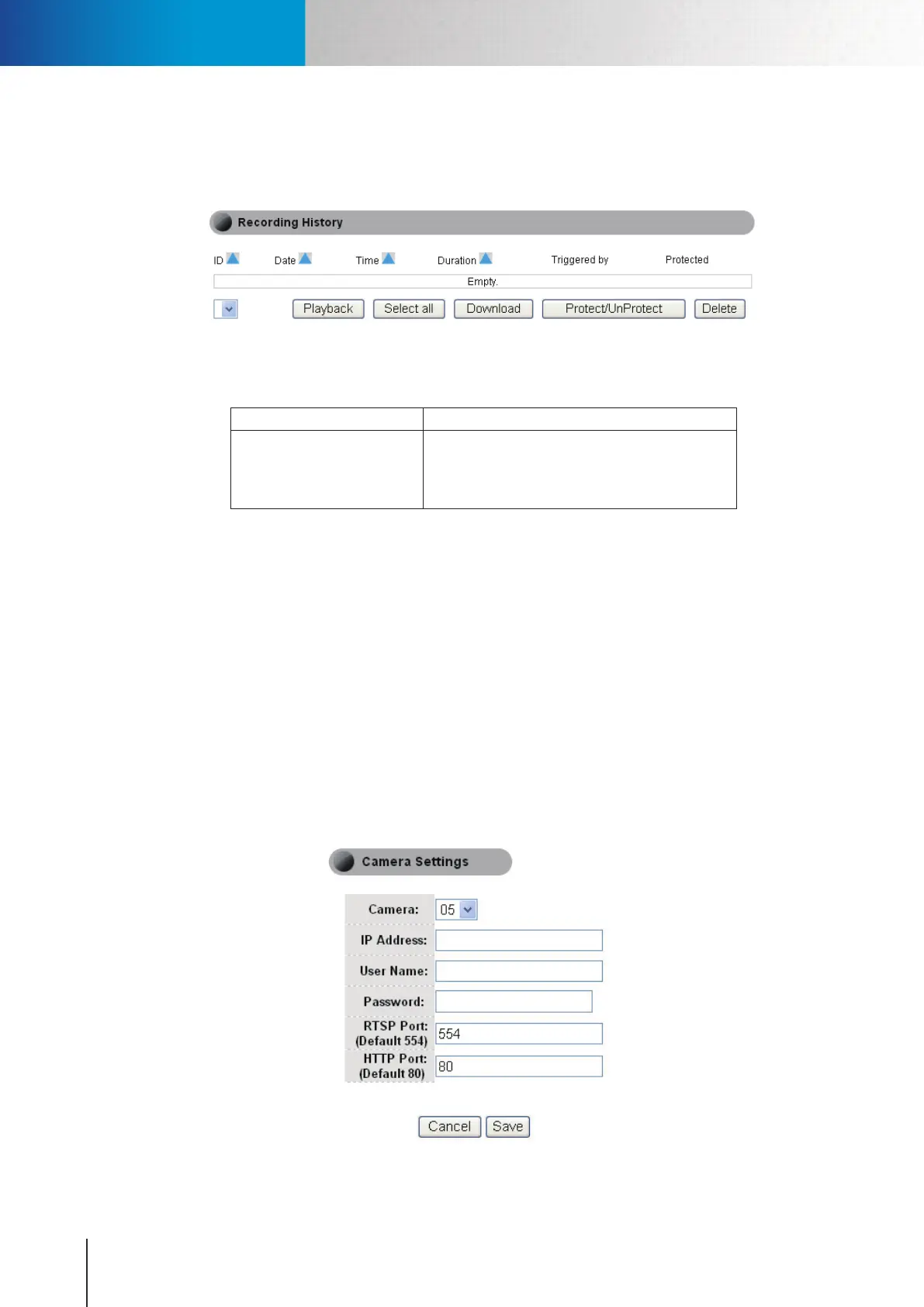 Table 6-4. Management of recording history