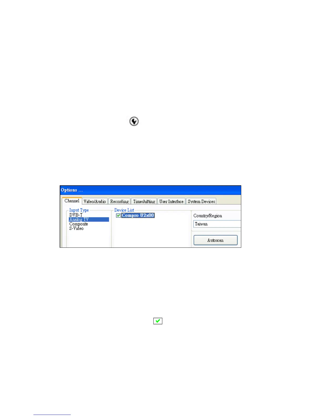 Choose ” Input Type” Check the ”Device List” Country /Region Autoscan