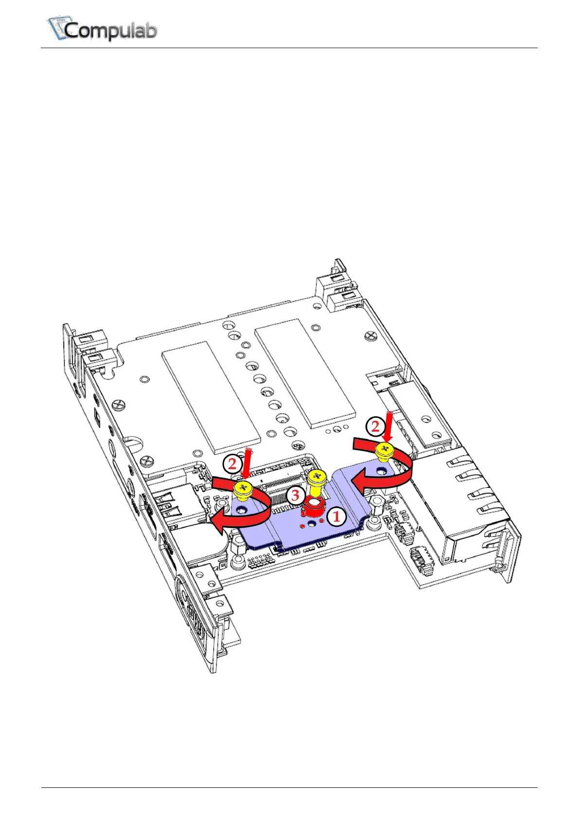 3. Insert the red spacer and fastening screw but do not tighten it.