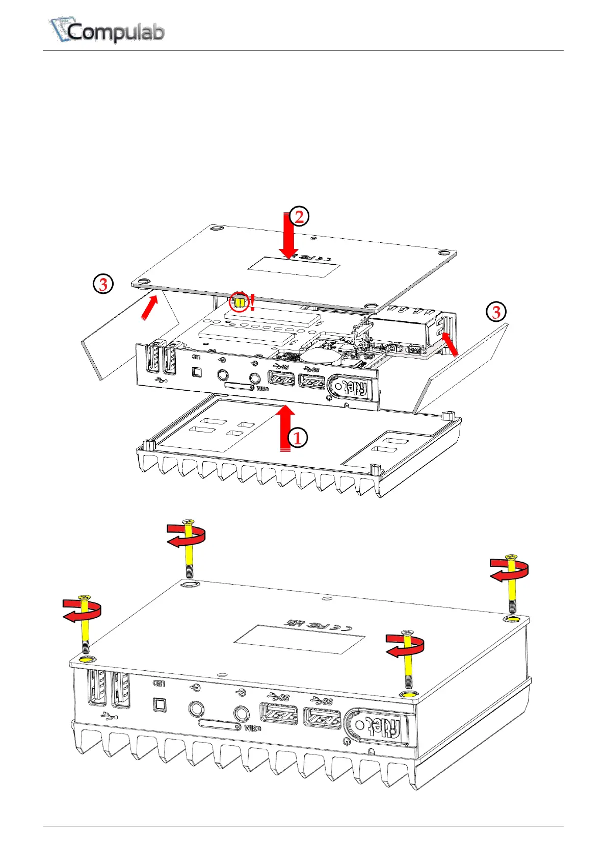 1. Place the fitlet3 onto the top cover.
