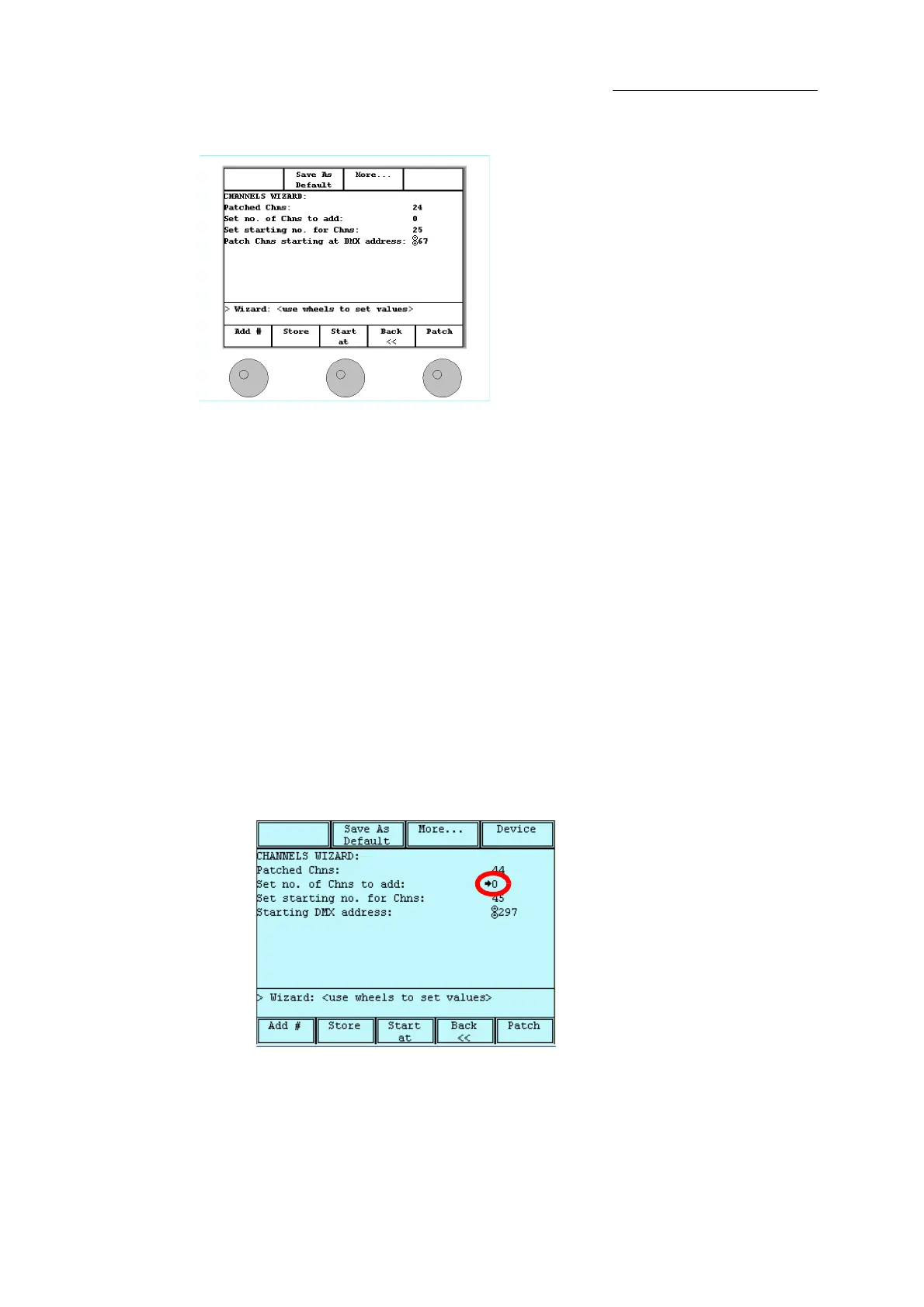 Wheel 2 - Set the start number for the channels, spots, or extras.
