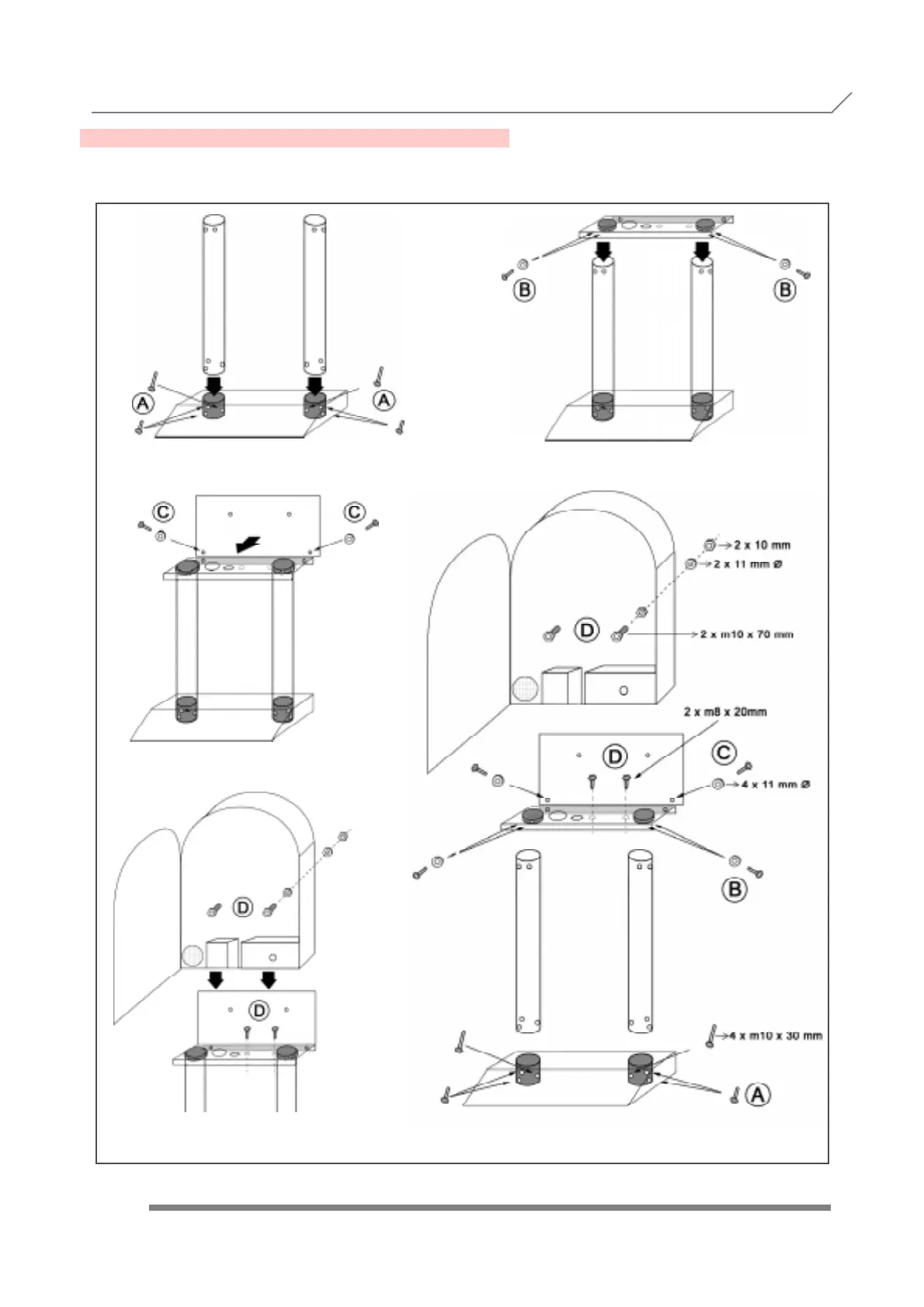 and the back support with the screws D.