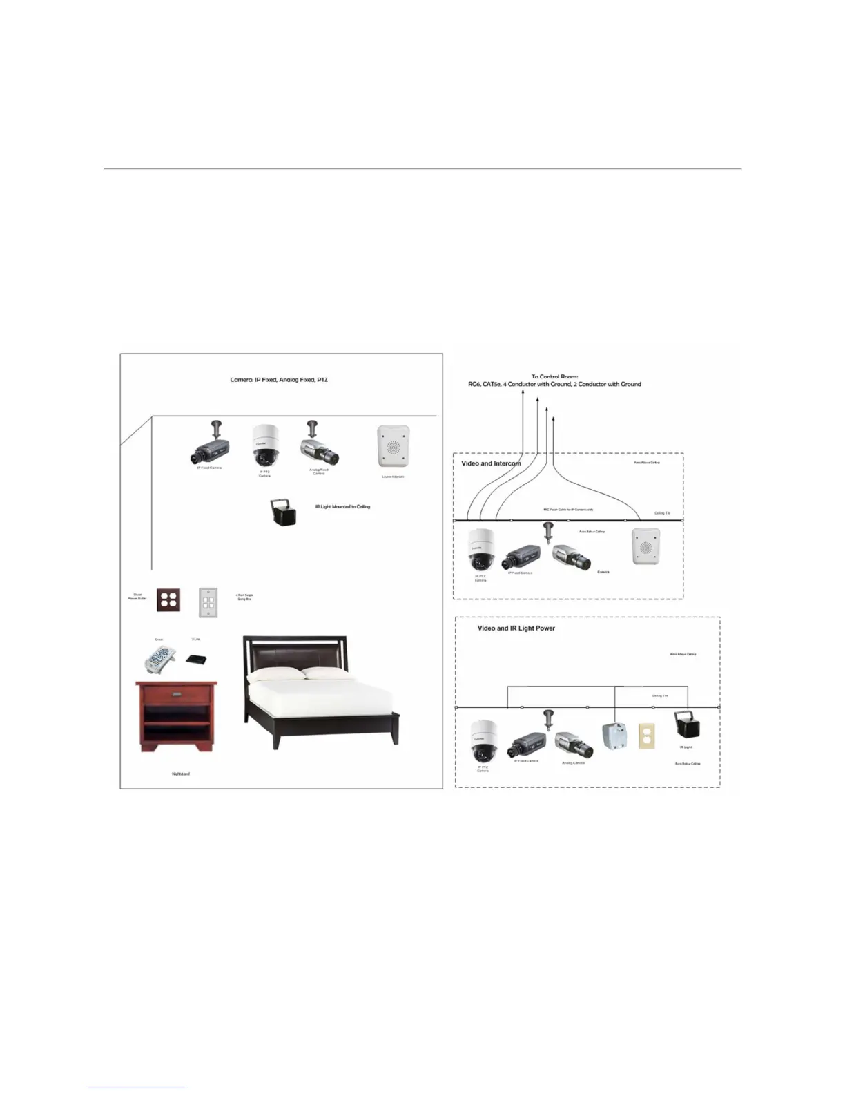 Compumedics Grael - Patient Room Layout Overview; Component Placement in Patient Room; Wiring to Control Room