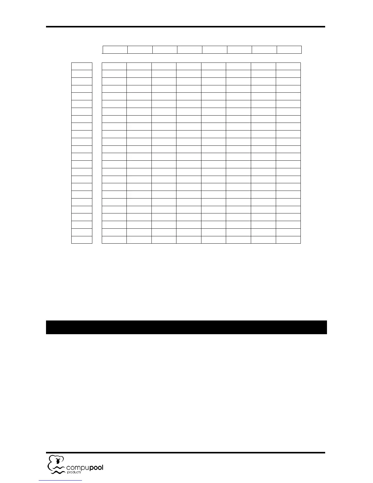 contains the size of your pool in gallons at the left of the chart. Where the column