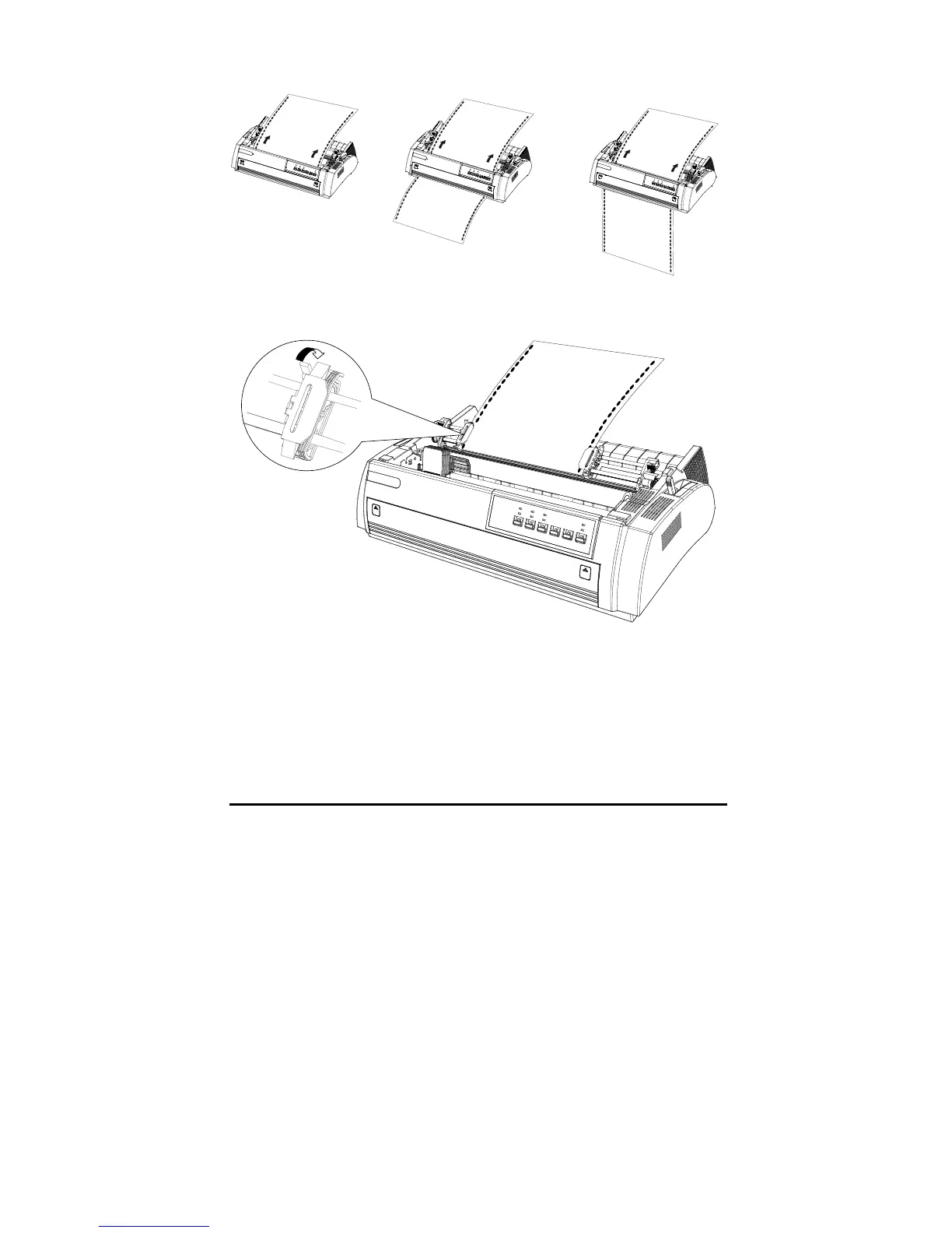 6. Open the sprocket cover to fit the holes of continuous paper to the pins of