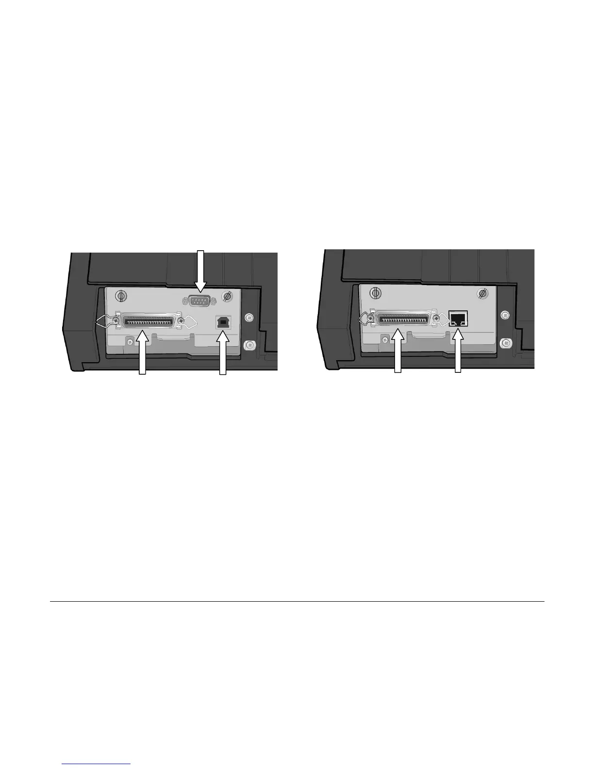 Insert the parallel interface cable into the parallel connector and fasten it by means of the clips.