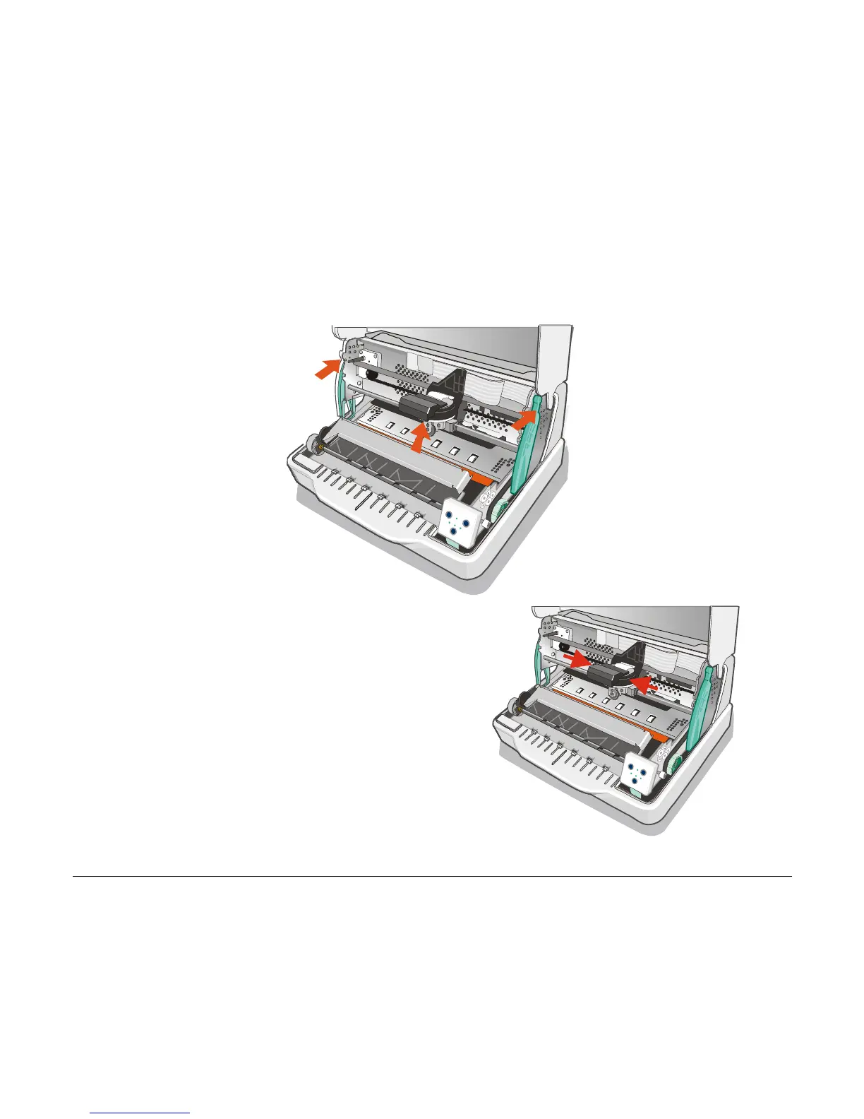 3. Open the print head assembly pushing the two green levers towards the rear of the