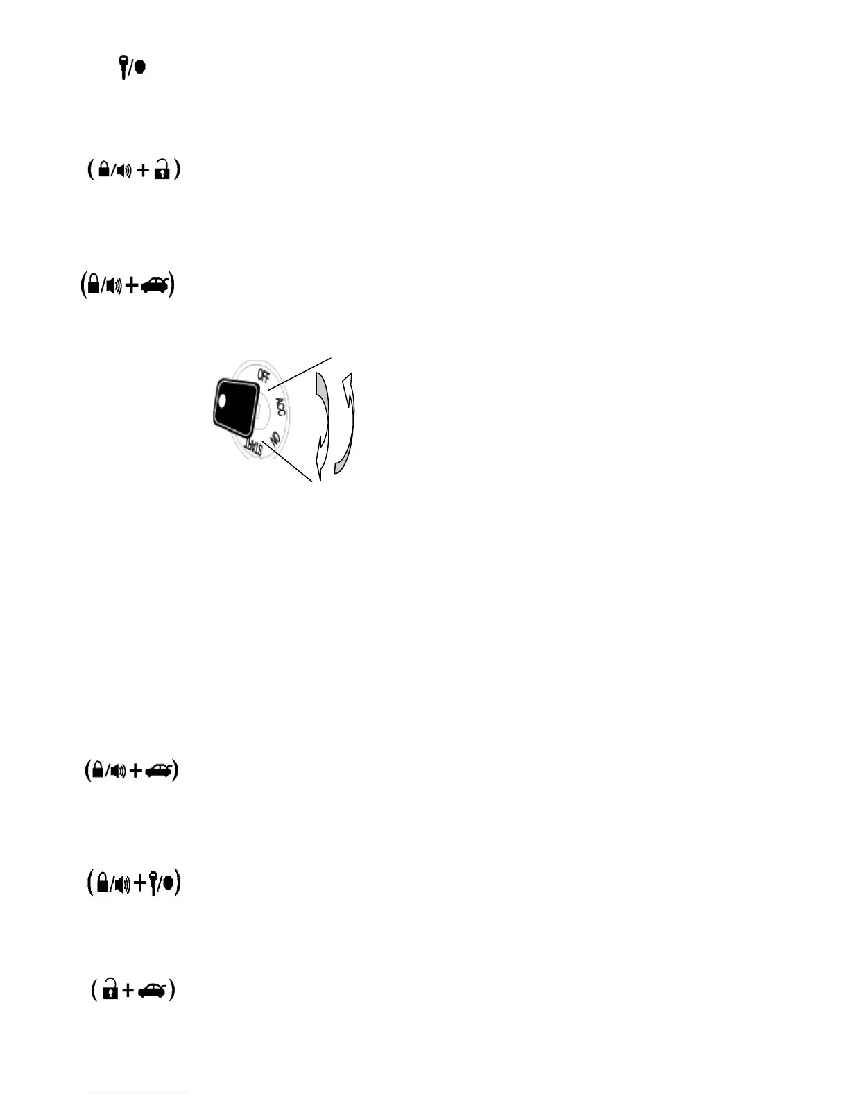 Lock Button + Unlock Button (0.5 Sec.) – Siren On/Off – Tapping these two buttons at the same time will