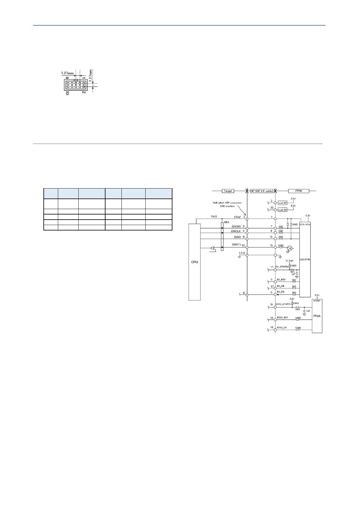 The signal table and target connection reference diagram when connecting a 10-pin 1.27mm pitch connector with SWD