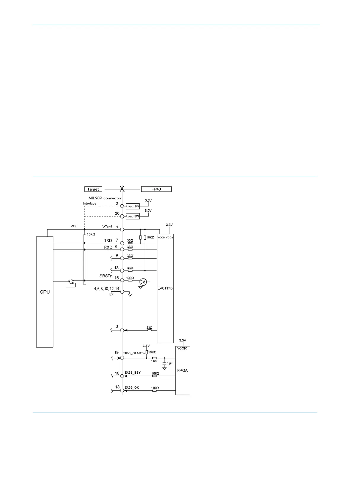 This can be used as the power supply from FP-40 to the target system. The two pins of the target connector are X3.3V
