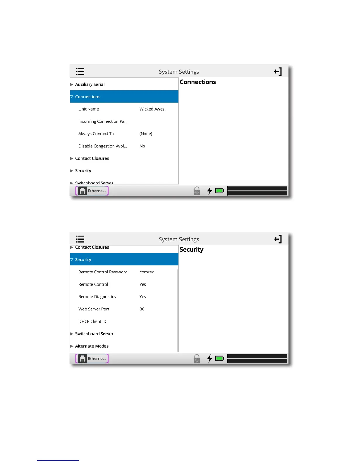Comrex Access NX - Connections Settings (System); Security Settings (System)