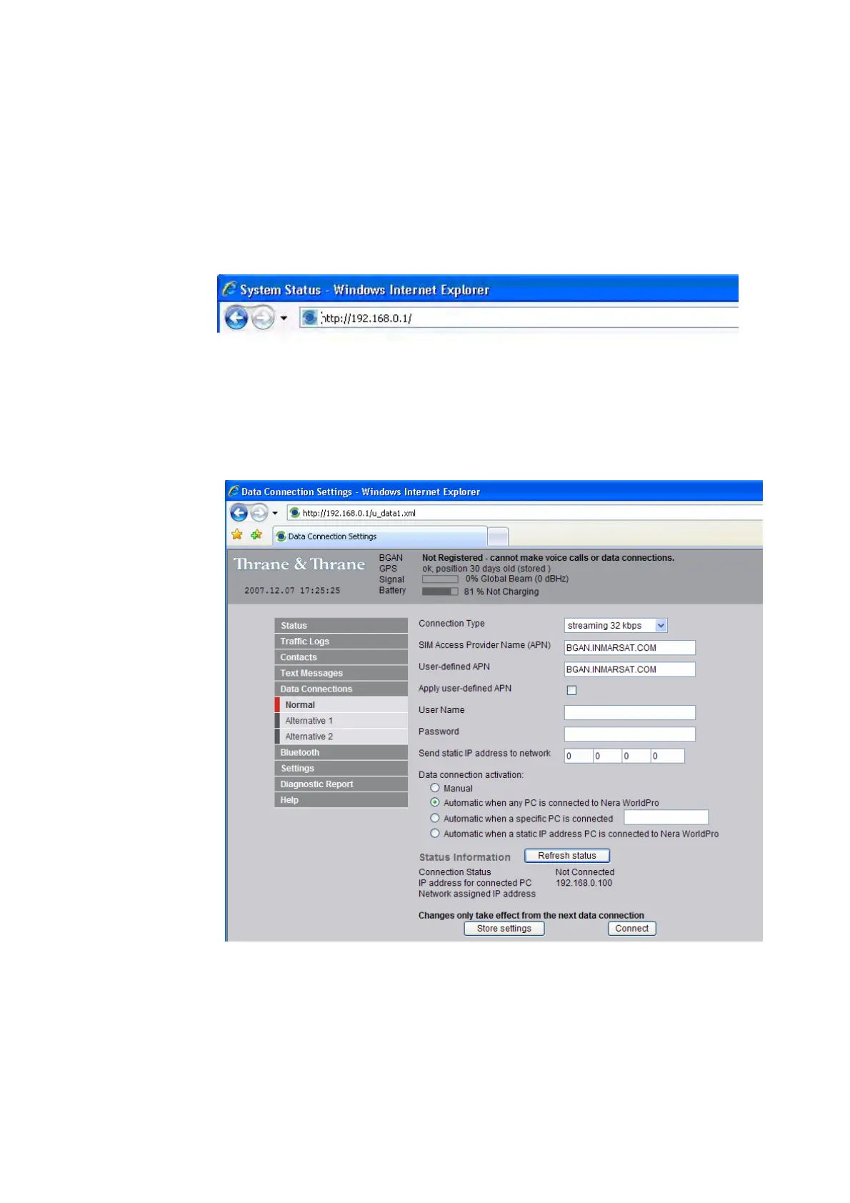 You can connect to BGAN in two different ways - from the web server interface, or by using the