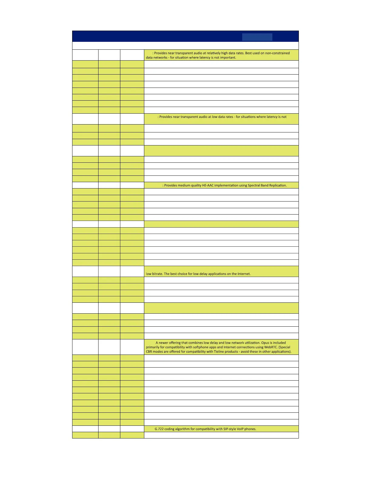 48 kb/s 184 ms 20 kHz G3 Stereo 48Kb adds Parametric Stereo to SBR for higher quality audio at low data rate