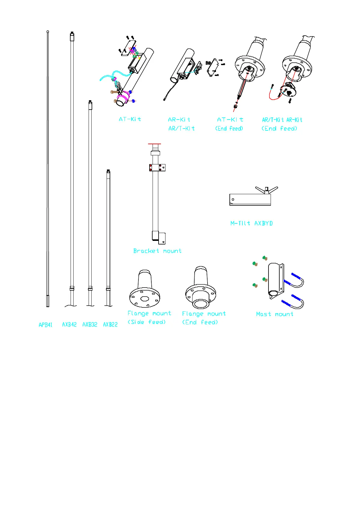 Top Whip A 4 m (13 ft) top whip, APB41, is common to all antennas.