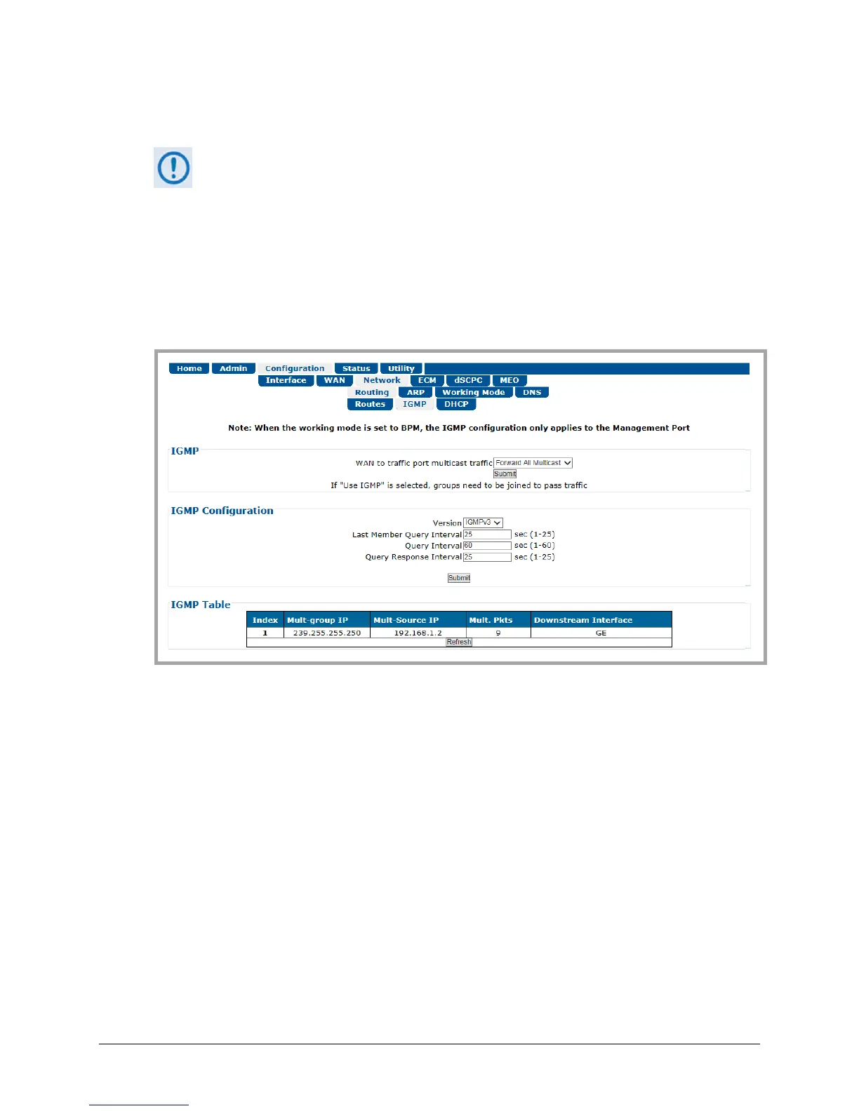 Figure 6-27. Configuration | Network | Routing | IGMP Page