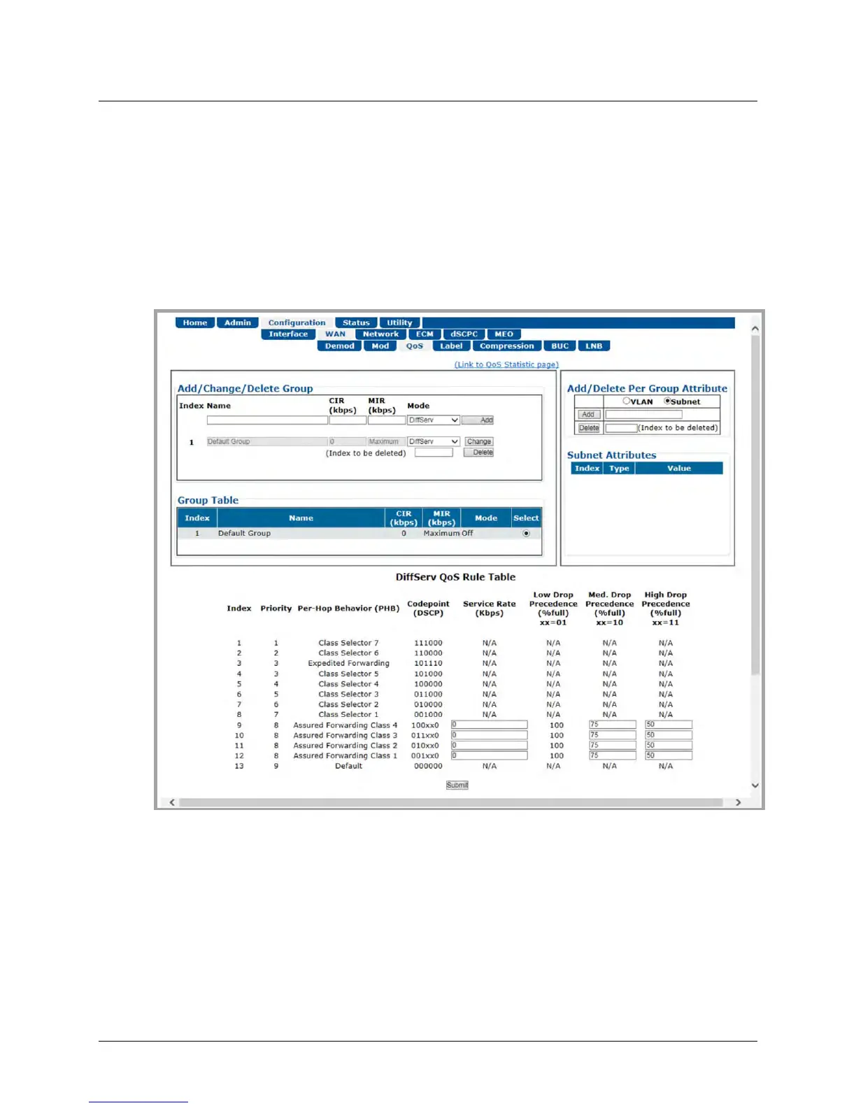 Figure J-5. CDM-840 HTTP Interface – Configuration | WAN | QoS Page Example